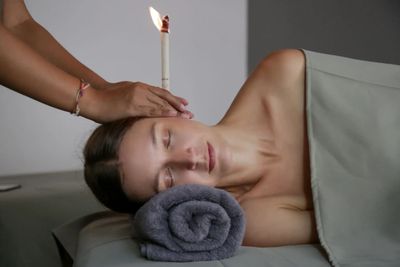 A very relaxing treatment in which the tapered end of an ear candle is placed in your ear, while the other end of the candle is lit, this creates a vacuum where earwax and other impurities are drawn out of the ear canal. While this is happening, you will receive a relaxing shoulder and neck massage.